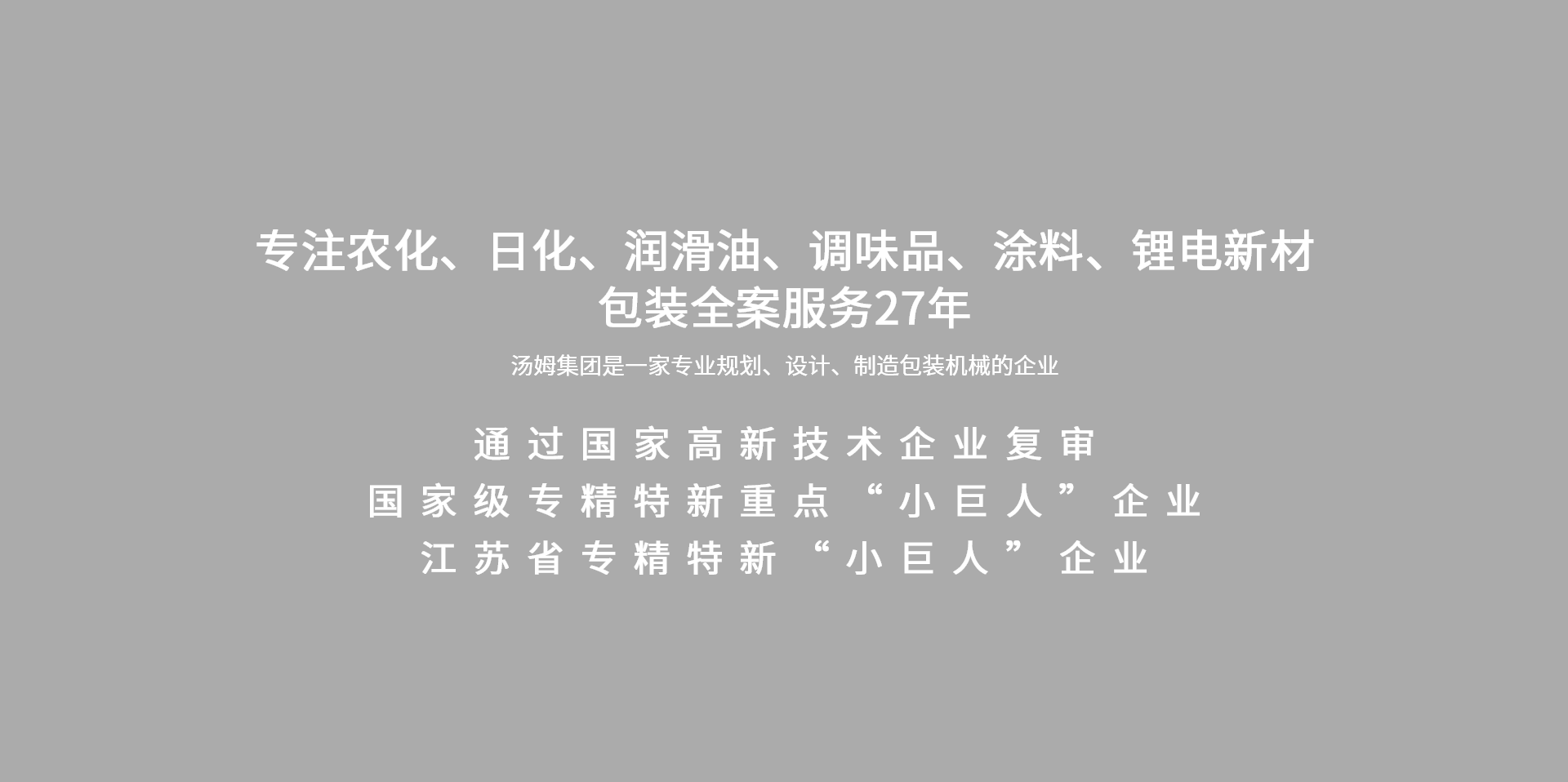 江蘇湯姆集團在液態(tài)、粉體、固體、顆粒等包裝領域的專長保證了工藝設計與整線工程的完美結合。建立了農化、石化、調味品、日化、涂料等不同包裝領域的工藝設計體系,根據(jù)不同的包裝形式及具體的工廠布局,均可提供專為您項目而量身定制的交鑰匙解決方案 。